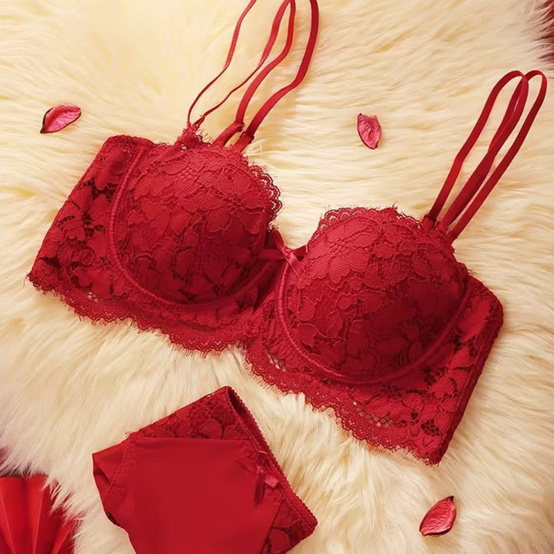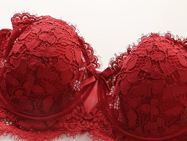 Make your wedding night unforgettable in our ravishing red lace push-up bridal lingerie set.