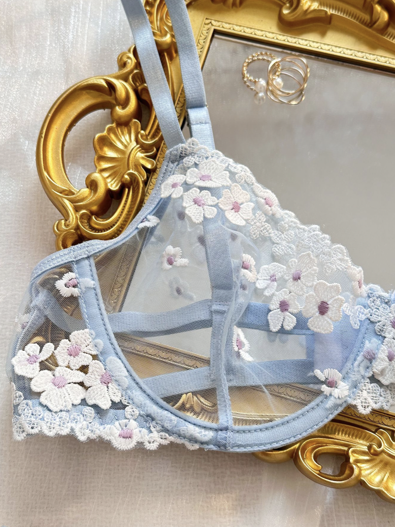 Indulge in the enchantment of romance with our exquisite floral embroidered bra Set. This lingerie ensemble features delicate floral motifs intricately embroidered on luxurious fabric, creating an alluring blend of elegance and passion.